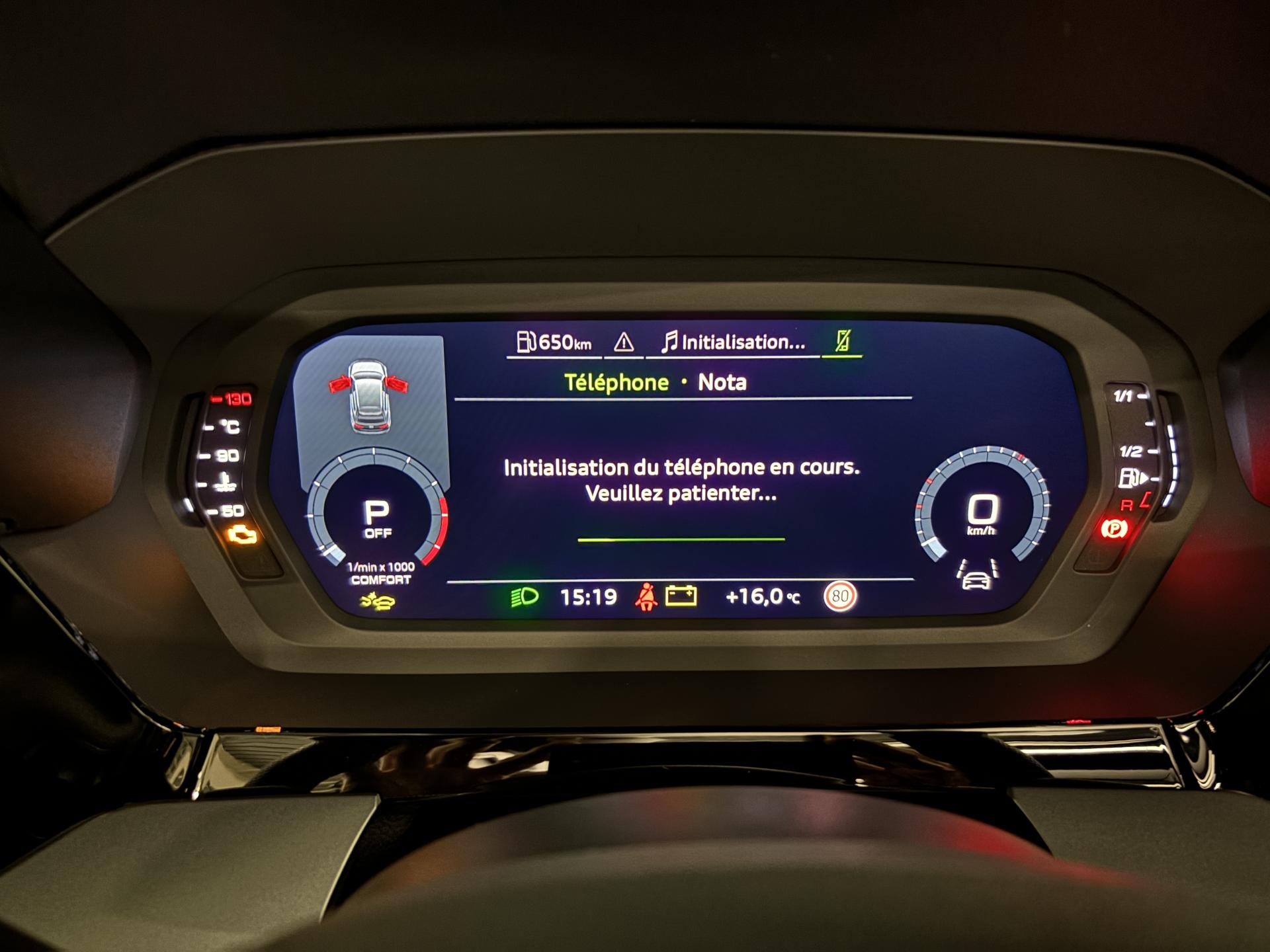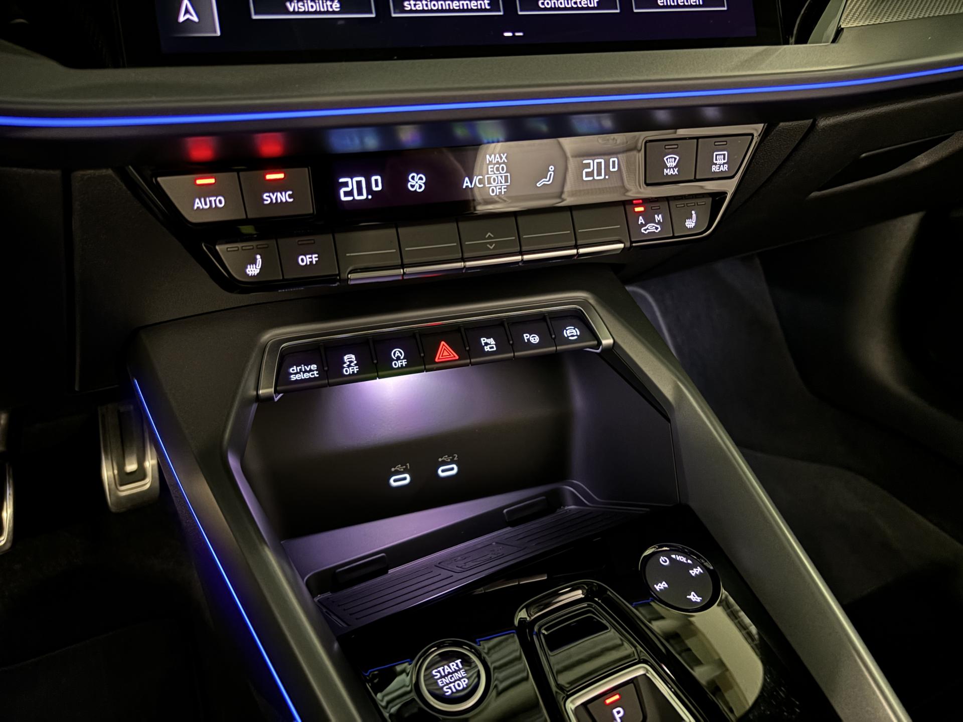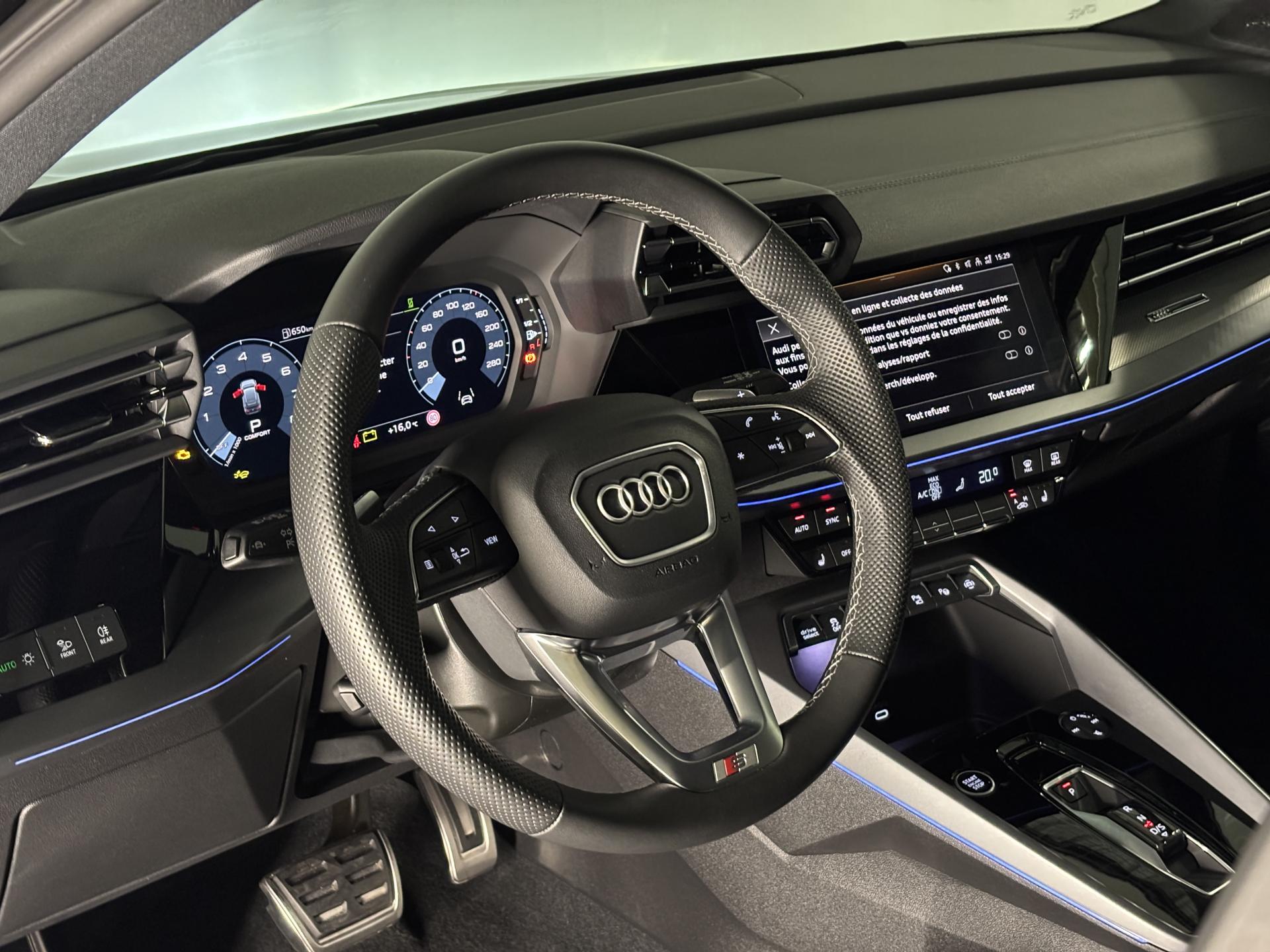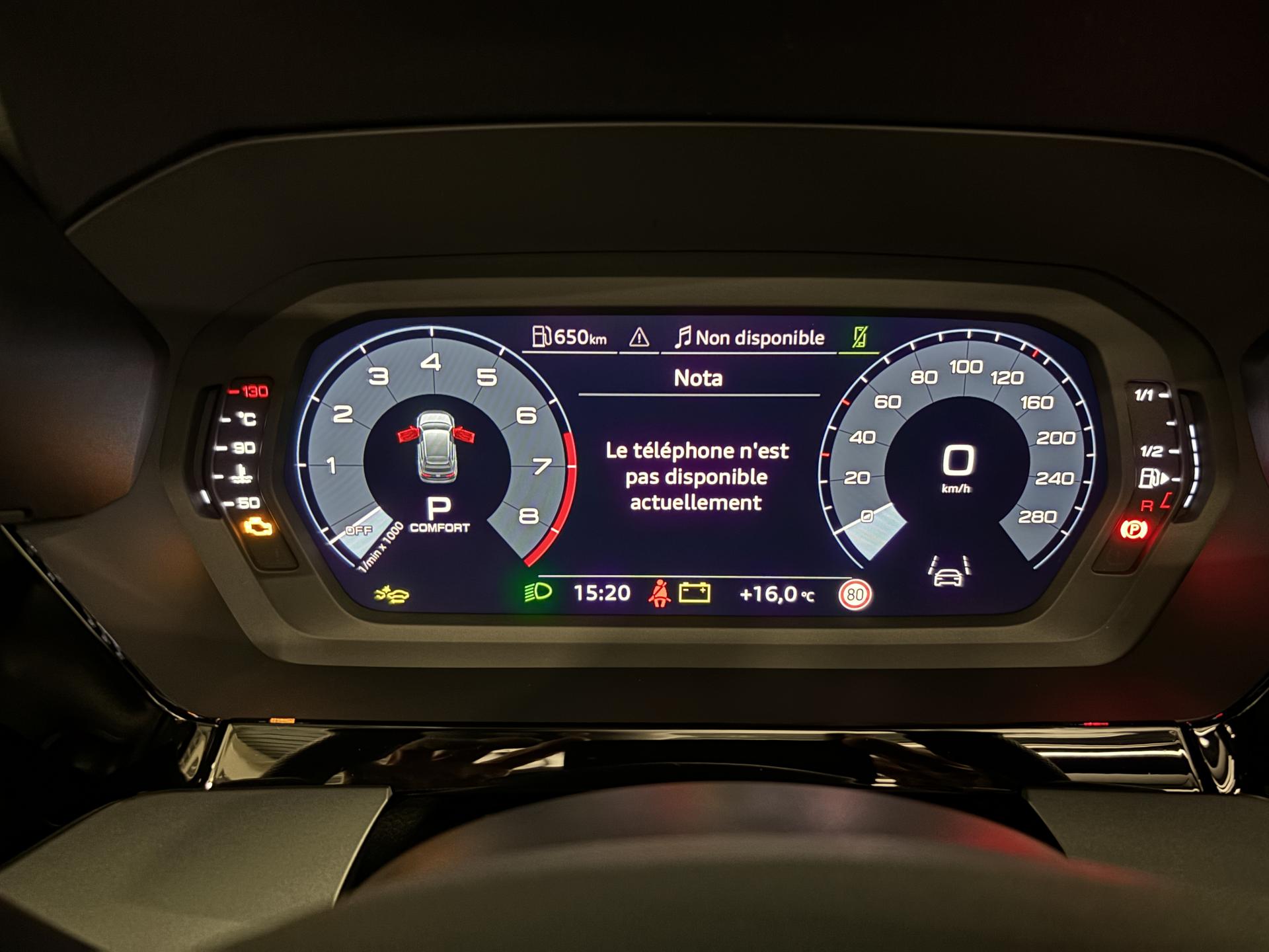 accès et démarrage main librefeux Matrix ledéclairage d’ambiance intérieurchargeur à induction pour smartphones4 vitres électriquesapple car play et android auto avertisseur franchissement de lignebluetoothcaméra de reculclimatisation automatiqueaudi drive selectjantes alu palettes au volantradar de reculreconnaissance panneaux de signalisationrégulateur de vitesse adaptatif ACCrétroviseurs rabattables éléctriquements sièges chauffantssurveillance angle morttoit ouvrantvirtual cockpitciel de pavillon en tissu noirpédalier alupark assistclignotant dynamiqueenceintes SONOSaudi side assist (detecteur d'angle mort)code phare automatique
