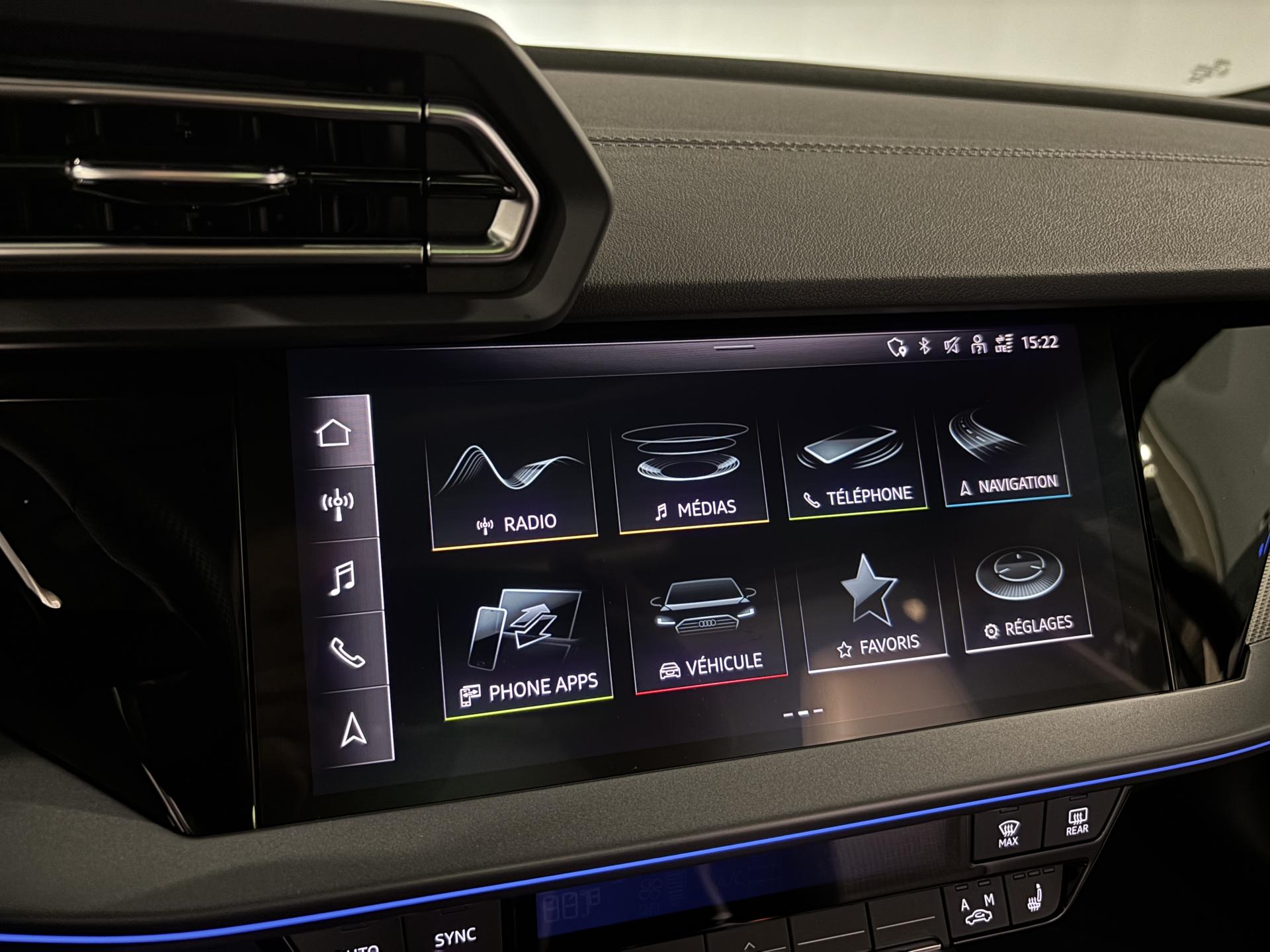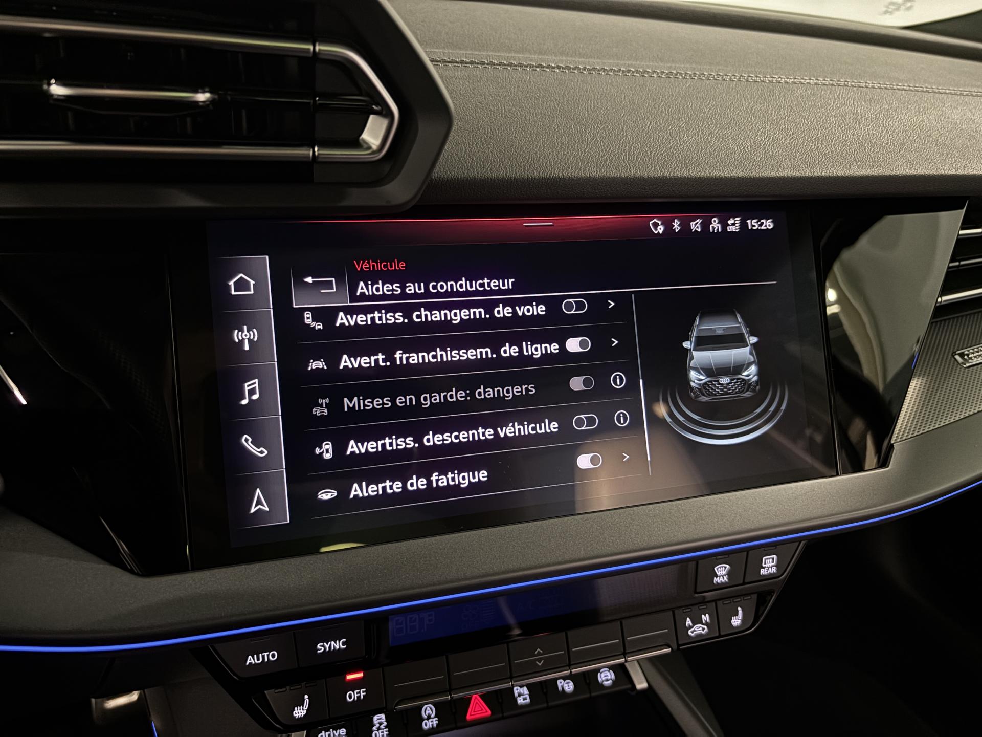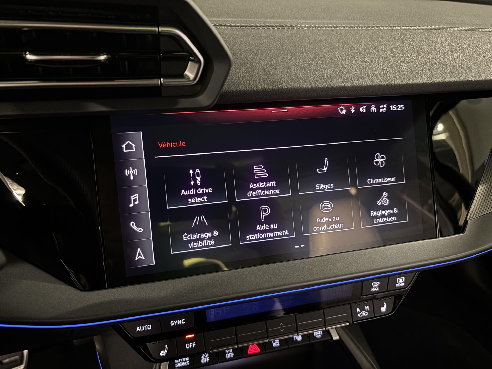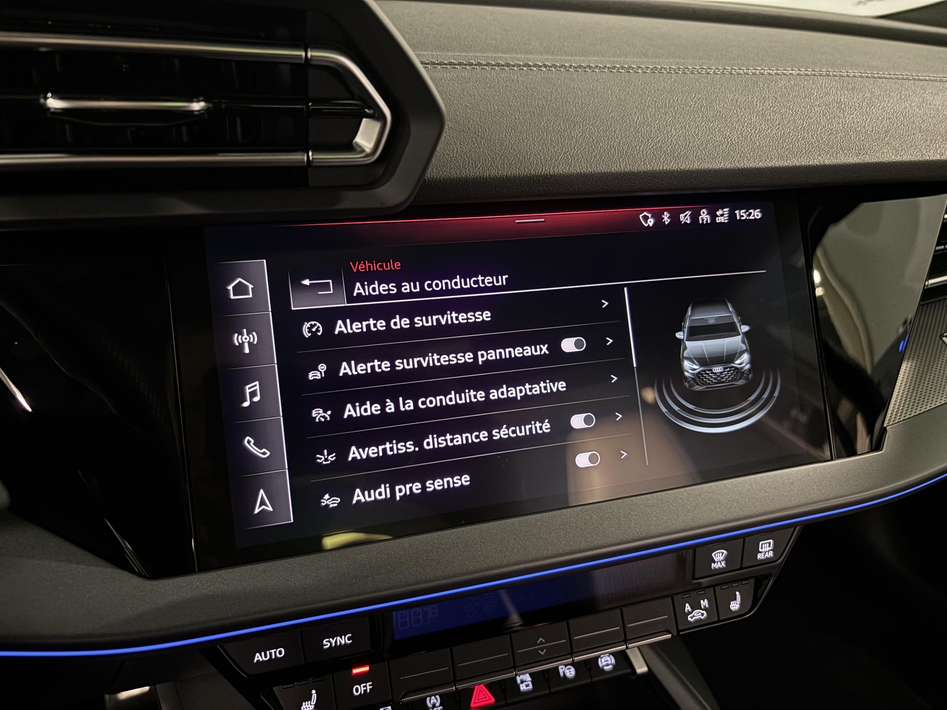 accès et démarrage main librefeux Matrix ledéclairage d’ambiance intérieurchargeur à induction pour smartphones4 vitres électriquesapple car play et android auto avertisseur franchissement de lignebluetoothcaméra de reculclimatisation automatiqueaudi drive selectjantes alu palettes au volantradar de reculreconnaissance panneaux de signalisationrégulateur de vitesse adaptatif ACCrétroviseurs rabattables éléctriquements sièges chauffantssurveillance angle morttoit ouvrantvirtual cockpitciel de pavillon en tissu noirpédalier alupark assistclignotant dynamiqueenceintes SONOSaudi side assist (detecteur d'angle mort)code phare automatique
